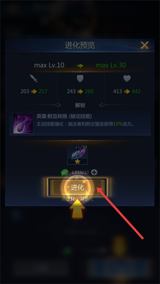 4、英雄等級提升后可進化,消耗材料進化英雄,解鎖新技能和更高等級上限,進一步強化英雄實力。