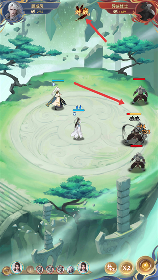 2、可與異族修士對戰,使用技能攻擊敵人,屏幕顯示傷害數值,通過對戰提升角色戰力。