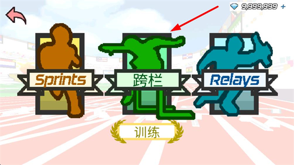 2、進入項目選擇界面,可看到Sprints跨欄等賽事選項,下方還有訓練按鈕,選擇對應的選項就能進入相應的賽事或訓練環節。