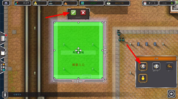 3、切換到物品分類,選擇對應的設施道具,放置到規劃好的區域內,點擊確認完成設施的布置,豐富場地功能。
