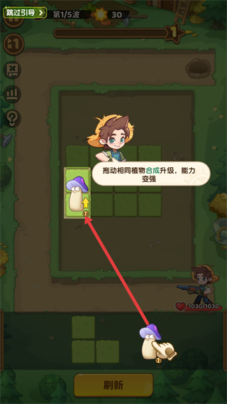 1、拖動相同植物合成升級,升級后植物能力變強,可更好抵御敵人怪獸猛烈進攻。