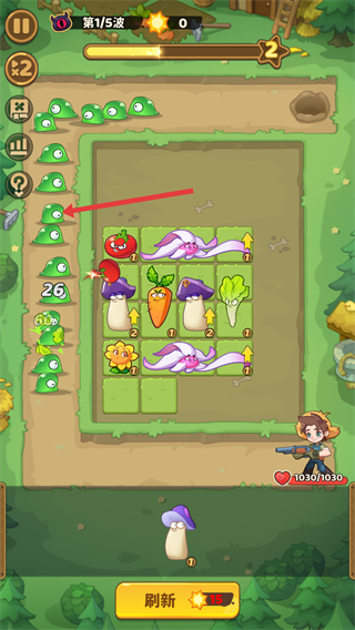 4、布置好植物后,敵人會從路徑進攻,植物自動攻擊敵人,需不斷合成升級植物阻擋敵人。