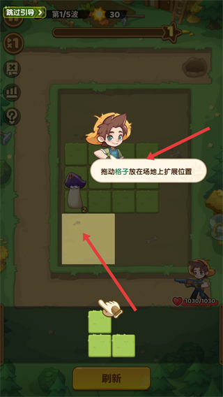 2、拖動格子在場地上擴展位置,擴大種植區域,以便放置更多植物提升防御能力。