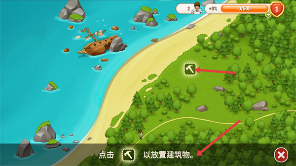 2、建造建筑物時,需點擊對應圖標放置,在荒島的不同區域規劃建筑布局,逐步完善島嶼建設。