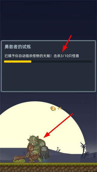 3、獲得自動獵殺怪物的天賦,按勇者的試煉要求,擊殺指定數量的怪物,完成試煉任務來提升獵人能力。