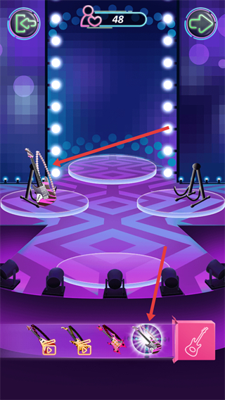 3、需要為角色挑選吉他,界面有多種吉他可選,選擇后可將吉他放置在舞臺的吉他架上,為表演做準備。