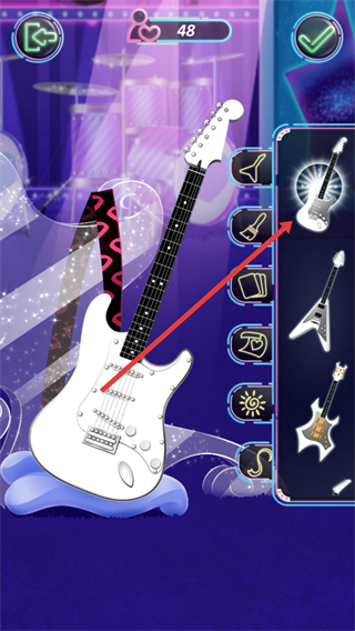 4、還能選擇不同樣式的吉他,為其更換外觀,打造獨特的吉他樣式,助力角色在搖滾秀里展現風采。