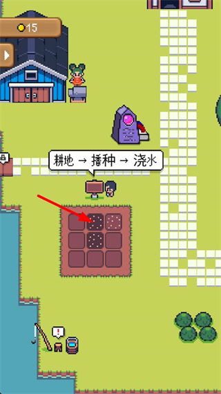 1、操控角色來到田地區域,可對田地進行操作,為后續的種植流程做準備,逐步開啟田園相關的經營玩法。