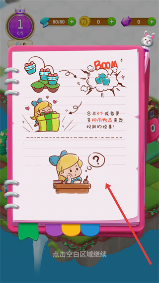 1、會出現筆記界面,展示合并玩法和獎勵說明,玩家點擊空白區域繼續,開啟莊園合并之旅。