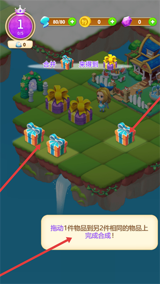 1、積極收集各種物品,根據游戲提示和自身策略,選擇合適的合成方式,通過不斷合成,獲取更高級的道具和建筑。