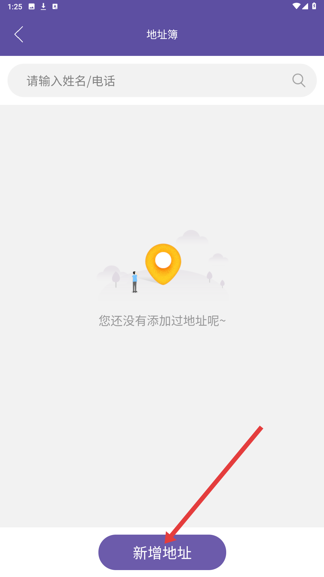 3、登錄后進入地址簿頁面,若未添加過地址,可點擊新增地址按鈕,填寫寄件或收件地址信息。