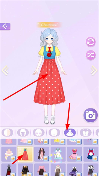 4、切換到服飾分類,挑選喜歡的服裝樣式,將其應用到角色身上,完成角色的整體裝扮搭配。