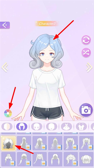 2、在裝扮頁面選擇發型分類,挑選喜歡的發型樣式應用到角色身上,還能通過調色功能改變發型顏色。