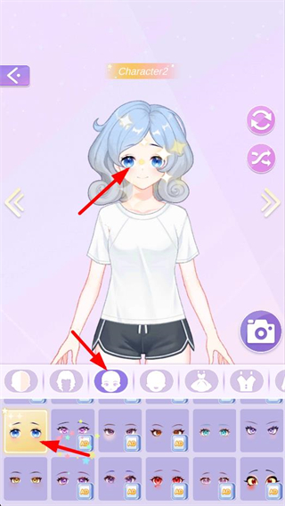 3、切換到妝容分類,選擇合適的眼部妝容樣式,應用到角色面部,細化角色的外觀裝扮效果。