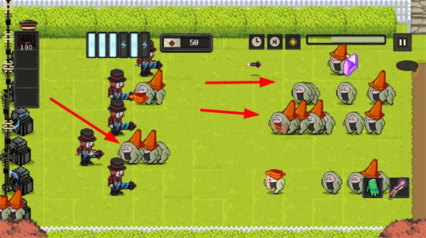 2、戰斗過程:當敵人出現時,角色會自動攻擊。在戰斗過程中,玩家要密切關注敵人的分布和動向,依據實際情況調整角色布局。