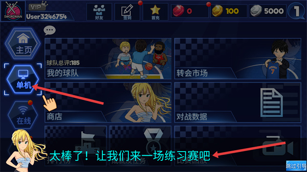 4、點擊單機板塊,可開啟練習賽,提升籃球技巧,享受街頭籃球的競技樂趣,開啟一場場精彩的籃球對決。