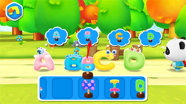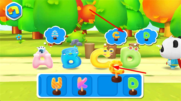 3、將對應裝飾道具放到匹配的字母萌物上方,讓裝飾與字母對應,完成裝飾的匹配布置,推進互動流程。