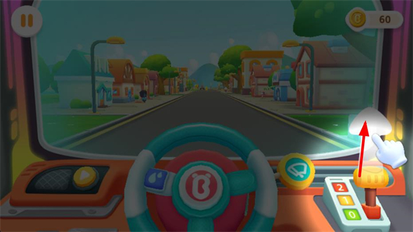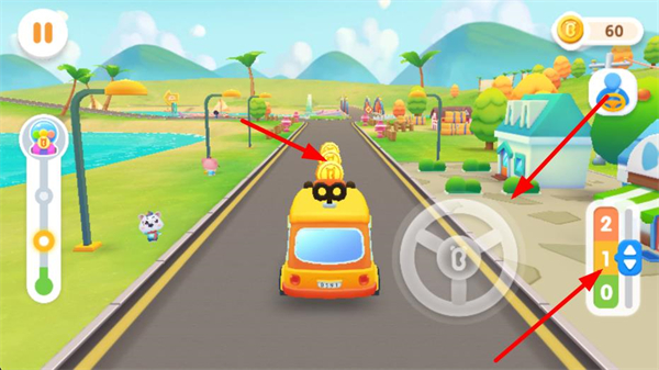 3、當需要調整體驗時:點擊屏幕右上角的方向鍵,切換駕駛視角或改變車速,還能利用購物車購買小書包,存放收集到的物品。