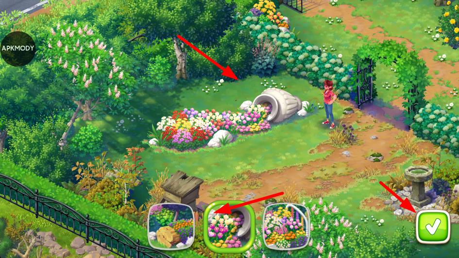 1、選擇對應的裝飾元素,點擊界面里的確認按鈕,完成花園區域的裝飾布置,推進場景美化進度。