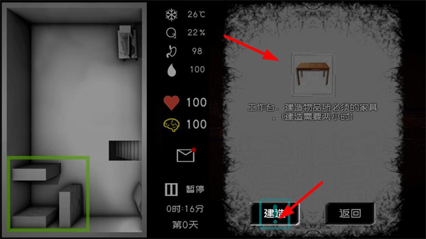 2、建造工作臺,它是建造物品所必須的家具,建造需要兩小時,建成后可解鎖更多建造功能。