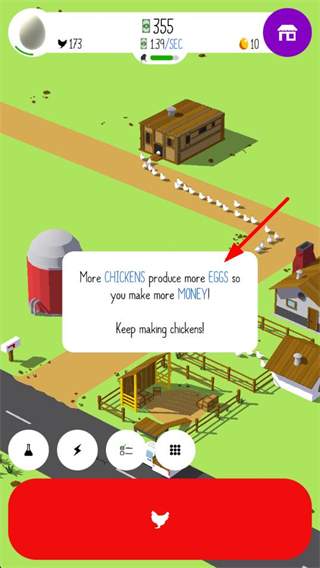 4、界面提示更多小雞能產更多蛋從而賺更多錢繼續養小雞,了解到這一規則后,持續增加小雞數量來提升收益。