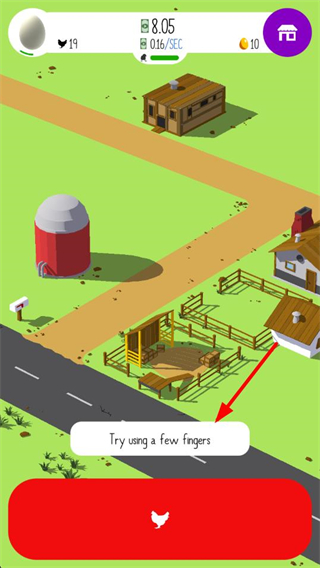 1、看到界面顯示8.05等數值,底部有帶小雞圖標的紅色按鈕,界面提示試著用幾根手指操作,按提示操作,開啟農場經營的第一步。