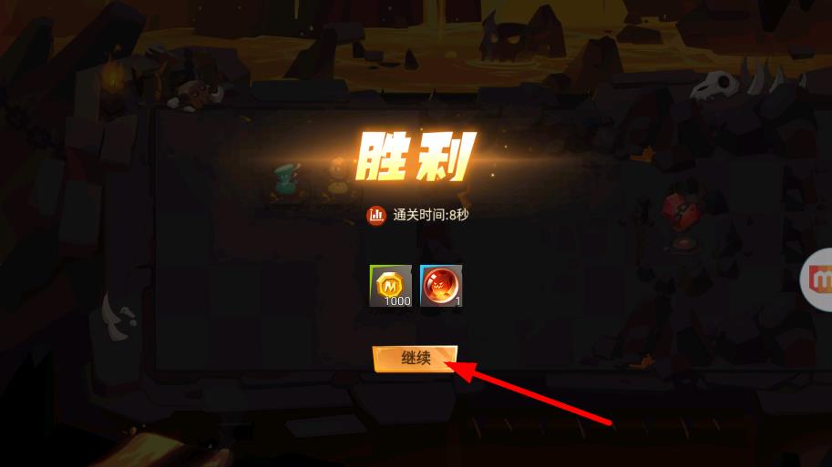 4、通關后會顯示勝利界面,可獲得金幣等獎勵,點擊繼續按鈕,開啟下一輪塔防挑戰。