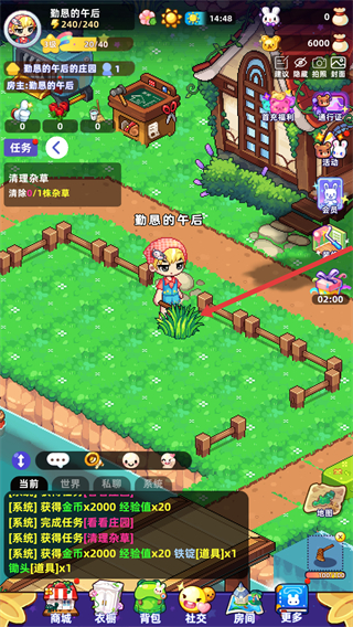 3、可在莊園清理雜草,完成清理雜草任務,獲取金幣、經驗等獎勵,推動游戲進程。