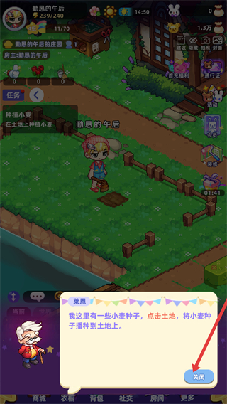 4、可在土地上種植小麥,根據提示點擊土地播種小麥種子,完成種植小麥任務,發展莊園農業。