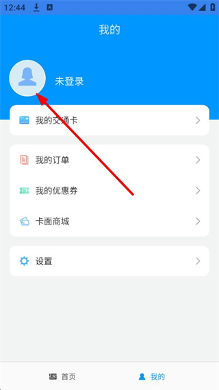 2、點擊我的進入個人頁面,顯示未登錄狀態,有我的交通卡、我的訂單等功能選項,點擊頭像可進入登錄頁面,進行賬號登錄操作。