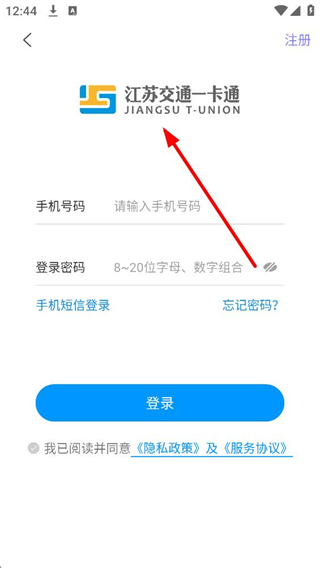 3、登錄頁面,可輸入手機號碼和登錄密碼,勾選同意隱私政策及服務協議后點擊登錄,也可選擇手機短信登錄或注冊賬號。