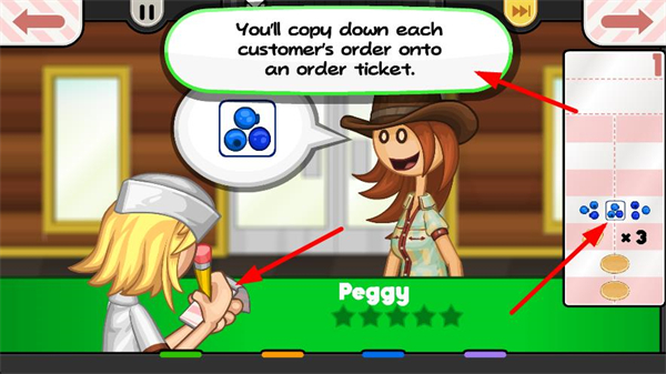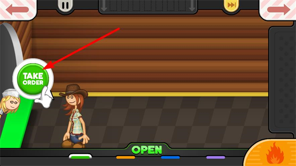 1、進入游戲后點擊TAKE ORDER按鈕,接收顧客的訂單,開啟煎餅制作的服務流程。