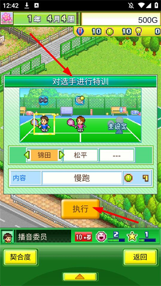 1、可對選手進行特訓,選擇對應的選手,確定特訓內容如慢跑,之后點擊執行按鈕,即可推進選手的訓練進程。