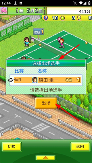 4、參與賽事前需選擇出場選手,選定單打選手后,點擊出場按鈕,即可讓該選手參與到對應的網球比賽中。