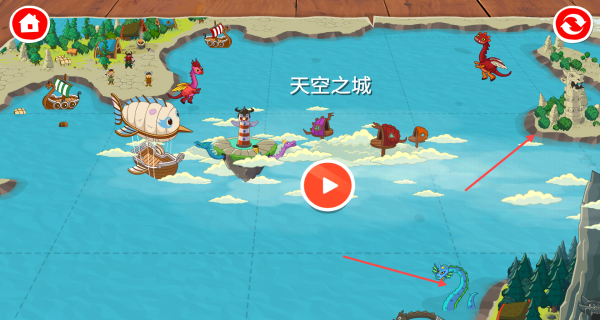 1、進入游戲場景:打開游戲,點擊“天空之城”進入場景,通過滑動屏幕切換不同環境,開啟探索之旅。