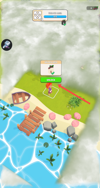 2、區域解鎖:根據提示,消耗木頭解鎖新區域,前往下一個地方,解鎖更多建筑物。