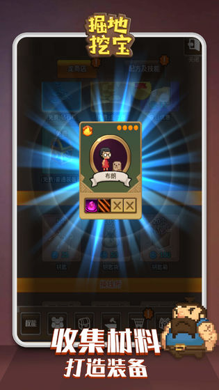 掘地挖寶一款饒有趣味的放置類冒險佳作,采用經典像素風格,玩法別具一格,玩家化身為矮人們的新保護神,肩負起指揮矮人挖掘礦山的重任,從地底挖掘寶藏,到整合利用資源,再將其制成武器、道具,用以抵御矮人的敵人,開啟絕地求生的冒險征程,雖看似簡單,實則蘊含角色養成、技能升級、陣容搭建、裝備煉化等多元互動玩法。
