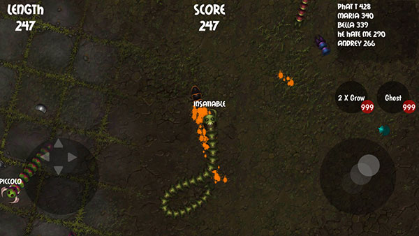3、圍殺策略實施:當自身長度足夠時,可團團圍住其他蟲子,使其無處可逃。