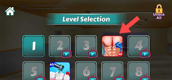2、選擇角色關卡:先選擇角色,再挑選關卡一,為手術做好準備。