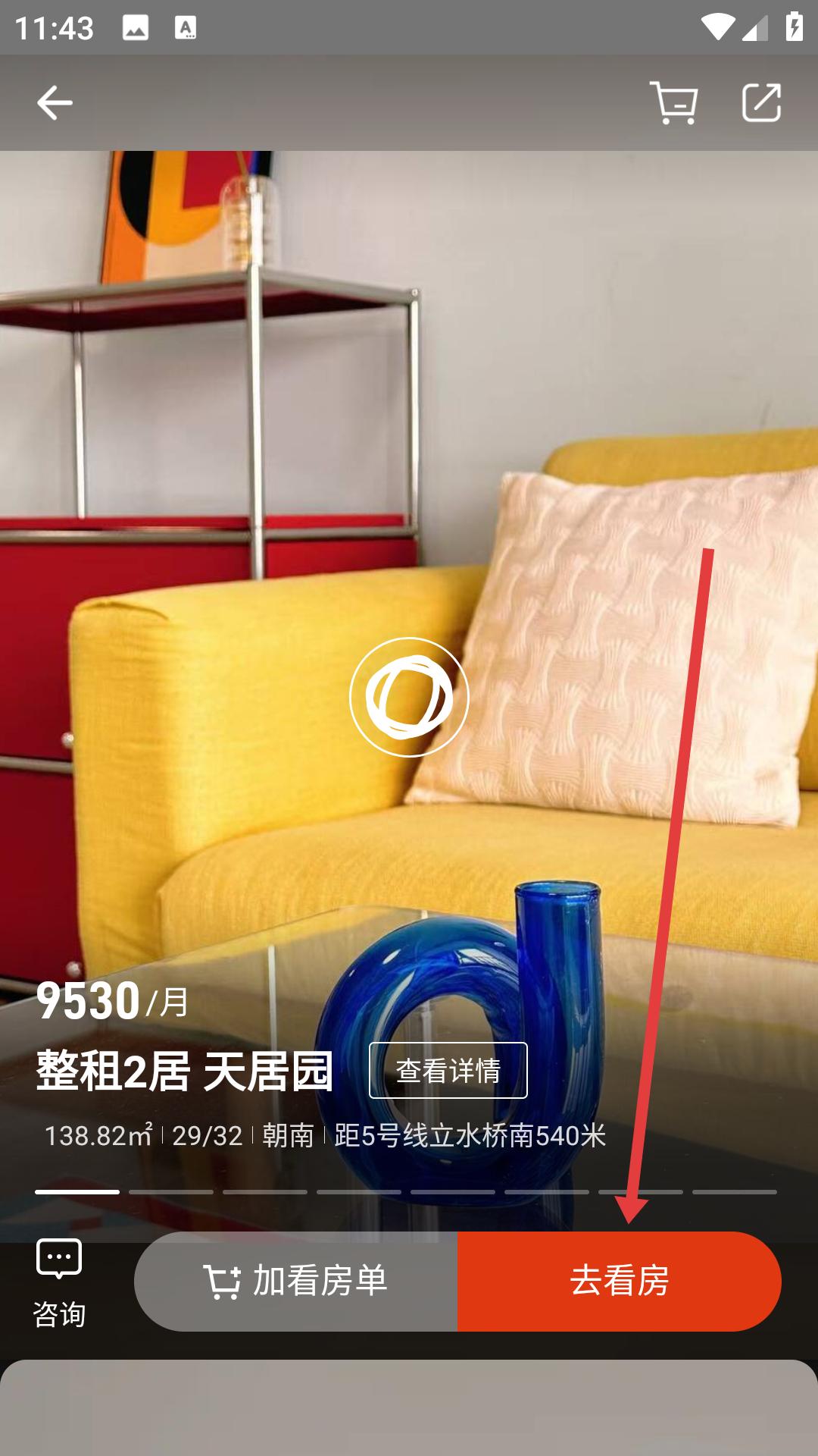 2、在房源詳情頁面,看到去看房按鈕,點擊該按鈕,進入看房相關操作頁面。