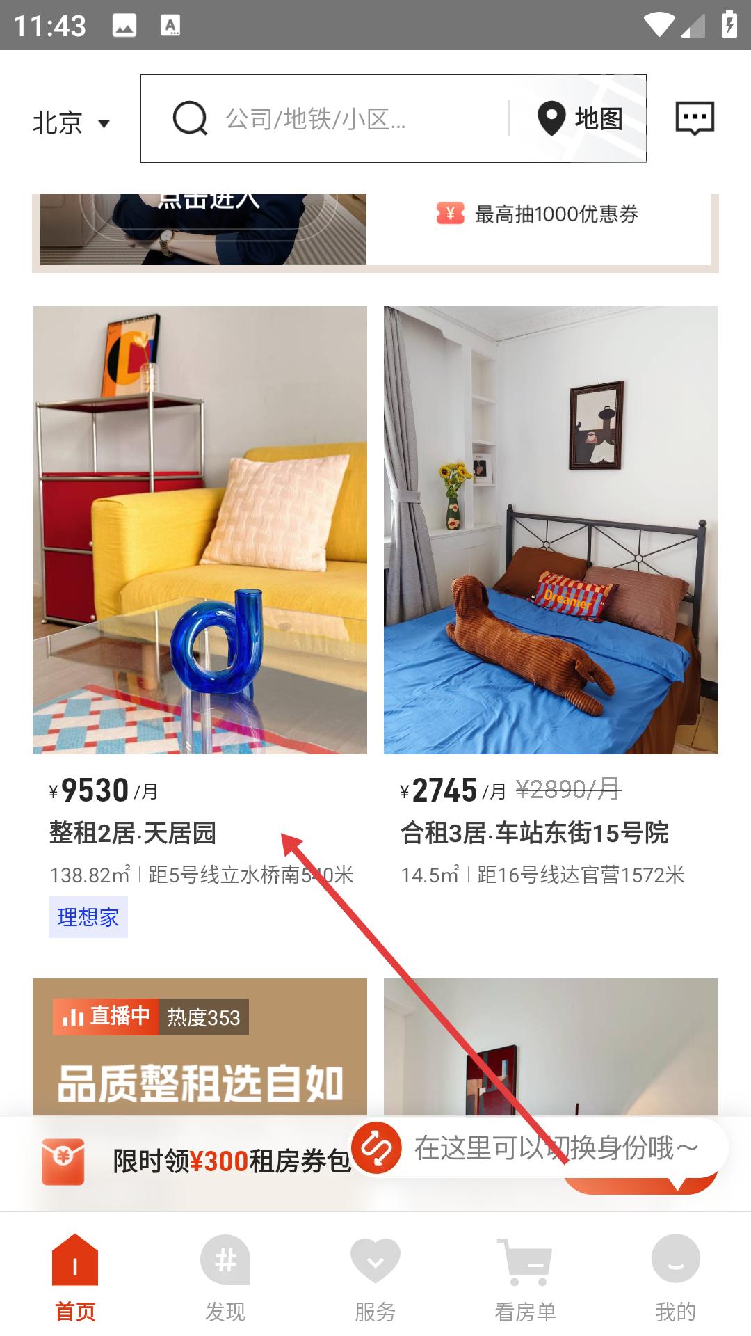 1、打開自如租房進入首頁,瀏覽展示的房源信息,選擇一套感興趣的房源,點擊該房源,進入房源詳情頁面。