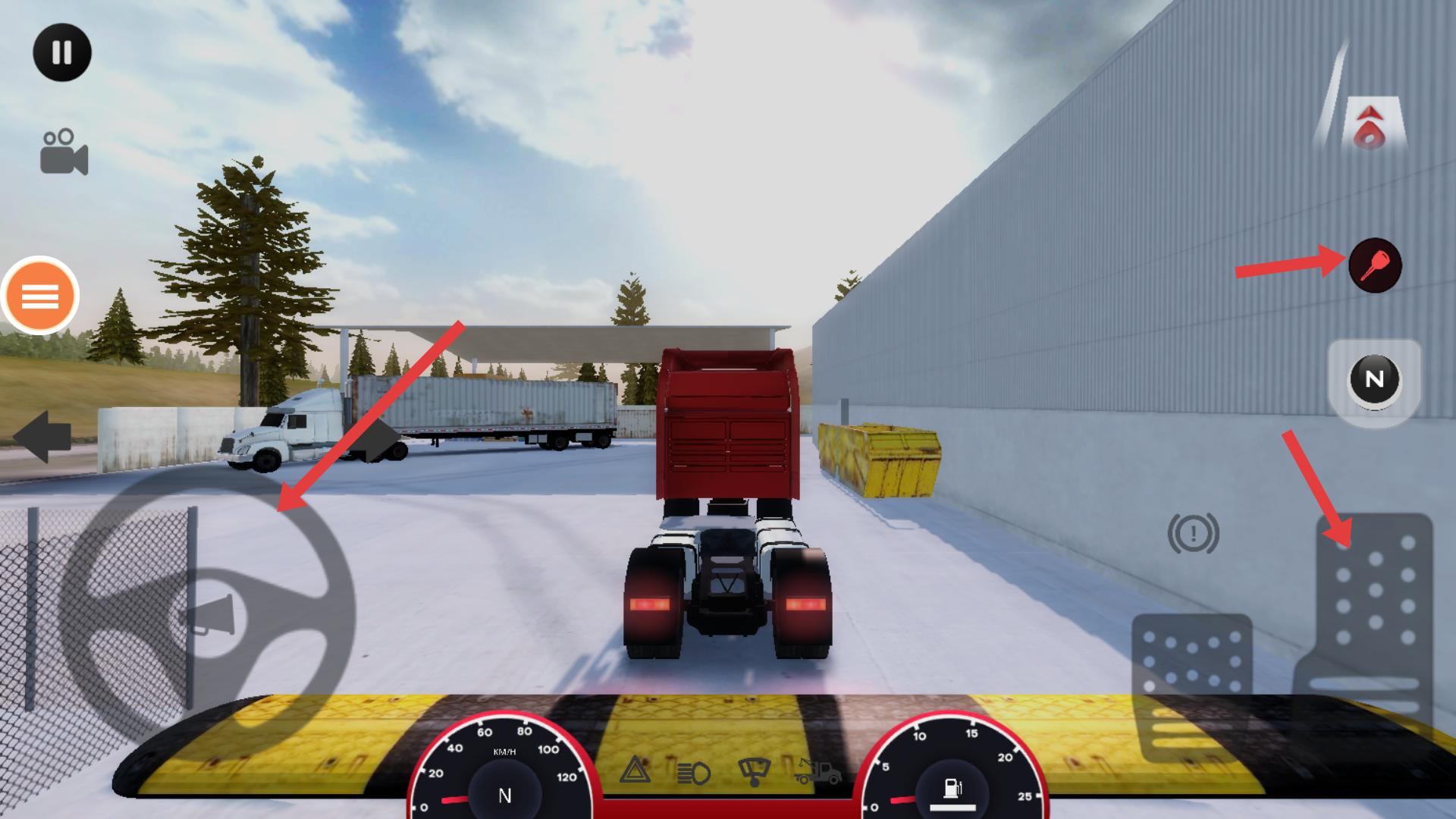 2、駕駛時,左側方向盤可控制車輛方向,右側鑰匙圖標用于啟動車輛,下方踏板分別控制油門和剎車,合理操作這些控件,確保車輛平穩行駛。