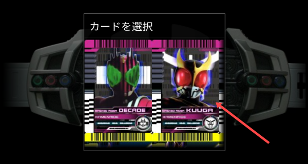 2、選擇變身卡牌:瀏覽并左右滑動假面騎士帝騎小卡片,挑選一張自己喜歡的卡片。