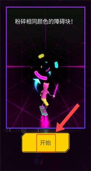 3、進行游戲操作:左右滑動屏幕控制角色,擊碎與光劍顏色匹配的障礙塊,利用道具輔助,注意血條變化。