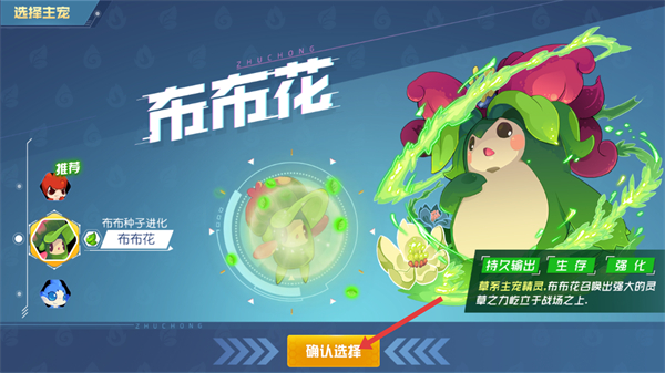 3、然后要選擇主寵,比如布布花,了解其特點后點擊確認選擇,獲得主寵陪伴,一起在賽爾號世界冒險。