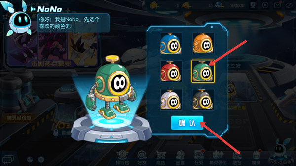 2、接著可選擇NoNo的顏色,挑選好喜歡的顏色后點擊確認,定制屬于自己的NoNo形象,為冒險增添個性。