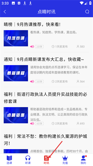 3、時訊頁面有9月熱課推薦、新課發布匯總等資訊,還有行政執法人員提升技能課、構建案源課等福利課程推薦。