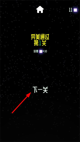 4、完成關卡后界面顯示完美通過提示,點擊下一關按鈕,即可進入新的關卡,繼續進行下墜挑戰。
