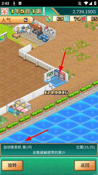 4、在校園內選定位置放置自動販賣機,花費對應金額完成布置,該設施可出售飲品,滿足學生的生活需求。