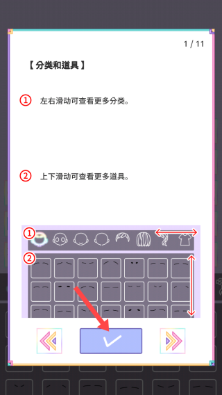 2、女孩形象裝扮:玩家可以為喜歡的女生更換發色、衣服等,通過左、右滑動查看更多類別,上、下滑動查看更多道具,拖動服裝、道具打扮女孩。